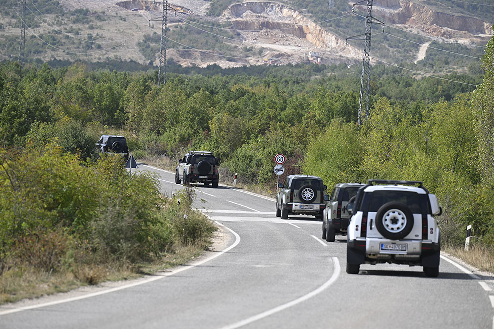 Овде, колоната автомобили Defender со ретка комбинација од екстремна цврстина и луксуз, заштитнички поставена кон погледот на езерото Козјак и недопрената природа на резерватот Јасен, како по дефиниција беше на свој терен.