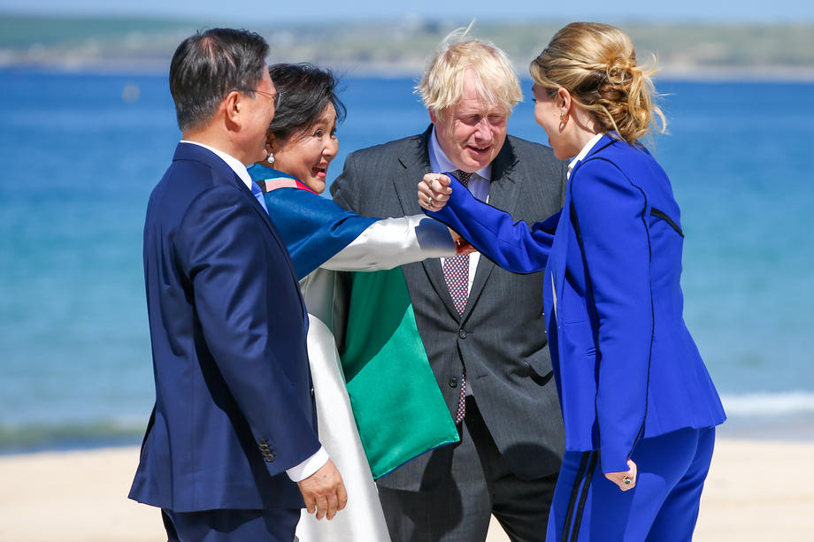 Британскиот премиер Борис Џонсон и неговата сопруга Кери попладнево го пречекаа генералниот секретар на ОН, Антонио Гутереш, и лидерите на Јужна Кореја, Австралија и Јужна Африка, кои пристигнаа на самитот на Г7 како гости.