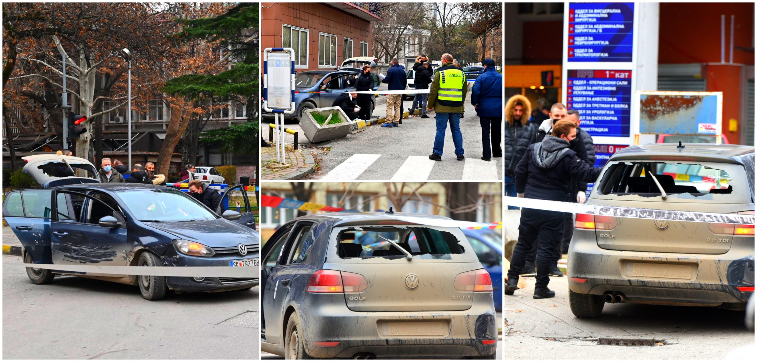 ФОТО | Хаос пред Градска: Ранет во вооружена престрелка, барајќи помош, со голф влета во болницата