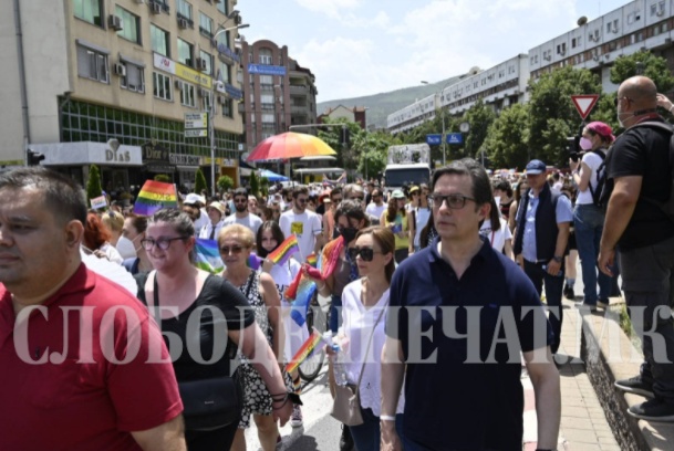 Претседателот Стево Пендаровски заедно со сопругата Елизабета присуствуваат на втората Парада на гордоста која се одржува под мотото „Вон ѕидовите“, во организација на Националната мрежа против хомофобија и трансфобија.
