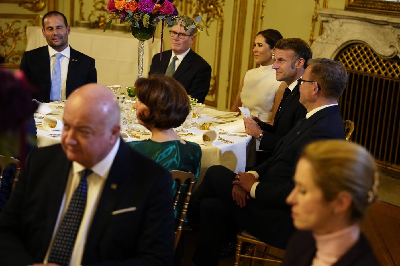 На фотографиите кои ги објави претседателката се гледа дека таа на приемот била на иста маса со Макрон и со Стармер.