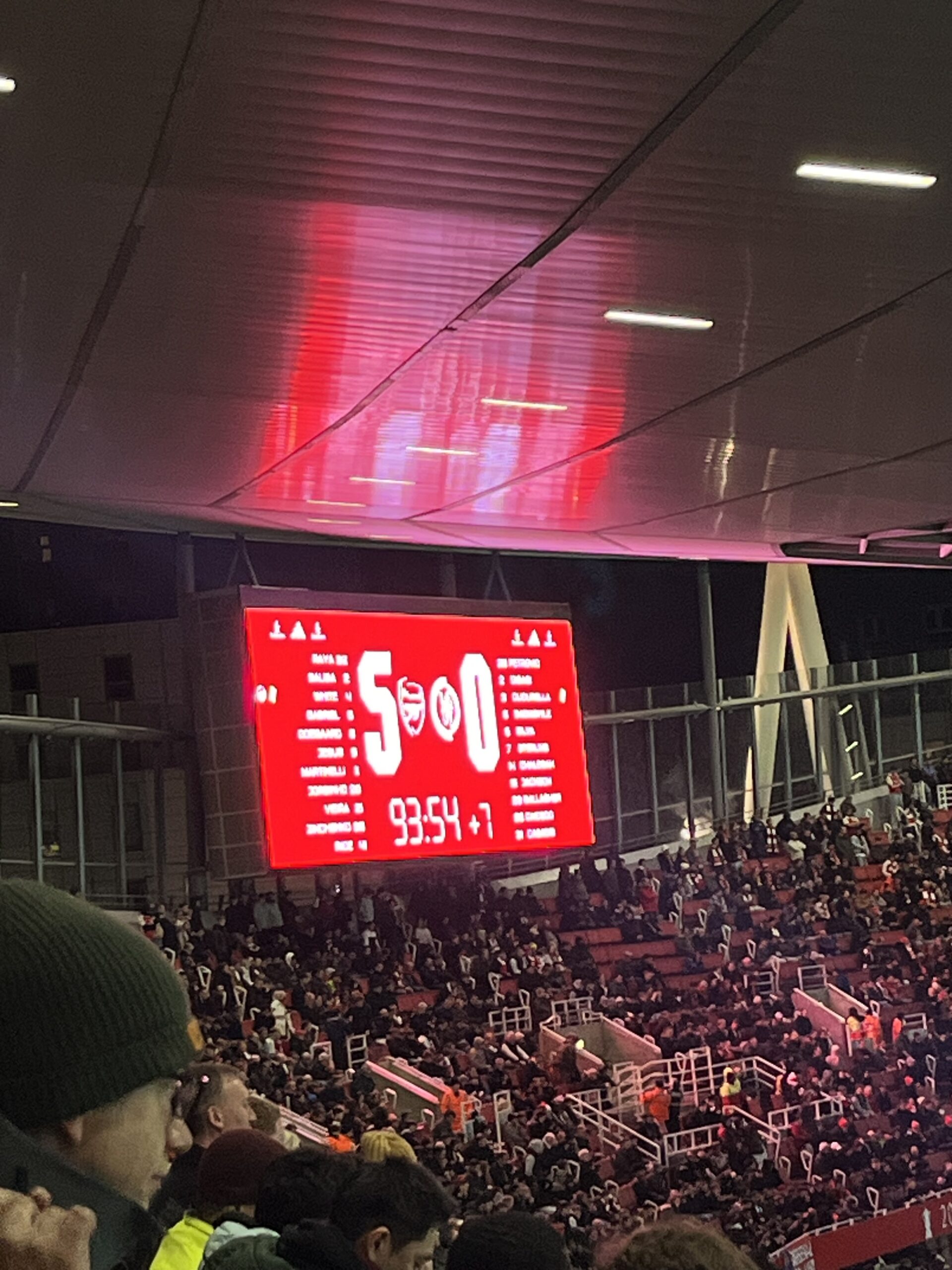 Кај навивачите на Арсенал, пак, ситуацијата беше тотално различна. Тие уживаа во фудбалот кој им го приредија нивните фудбалери, па по завршувањето на натпреварот останаа да пеат и да ги бодрат играчите.