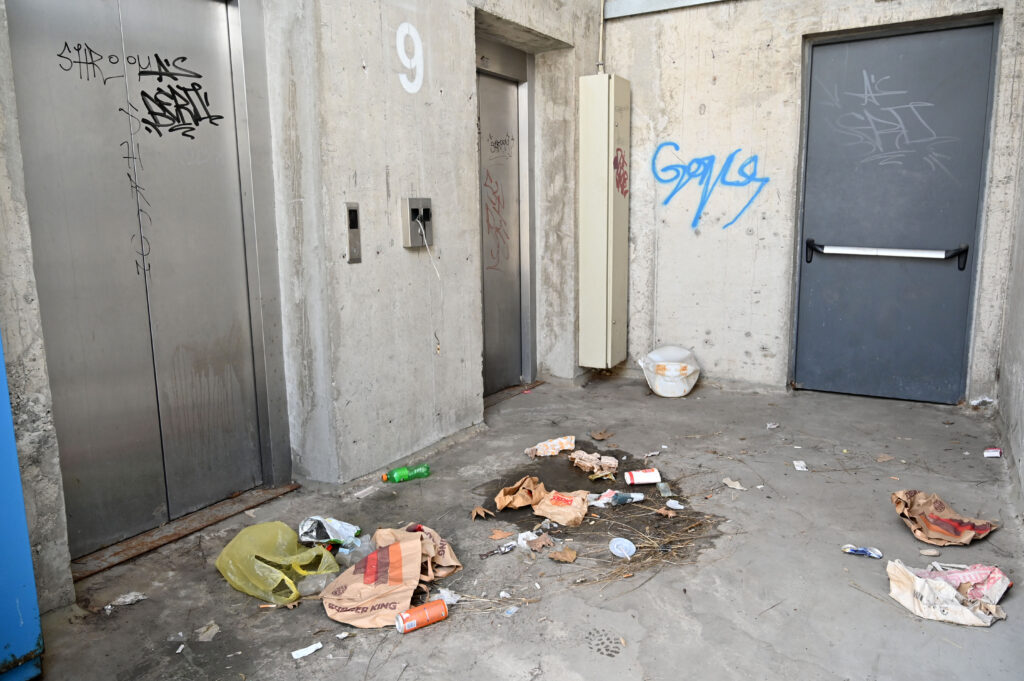 ФОТО/ВИДЕО | Ужас во катната гаража „Разловечко востание“, лифтовите не работат, скалите смрдат на урина и фекалии