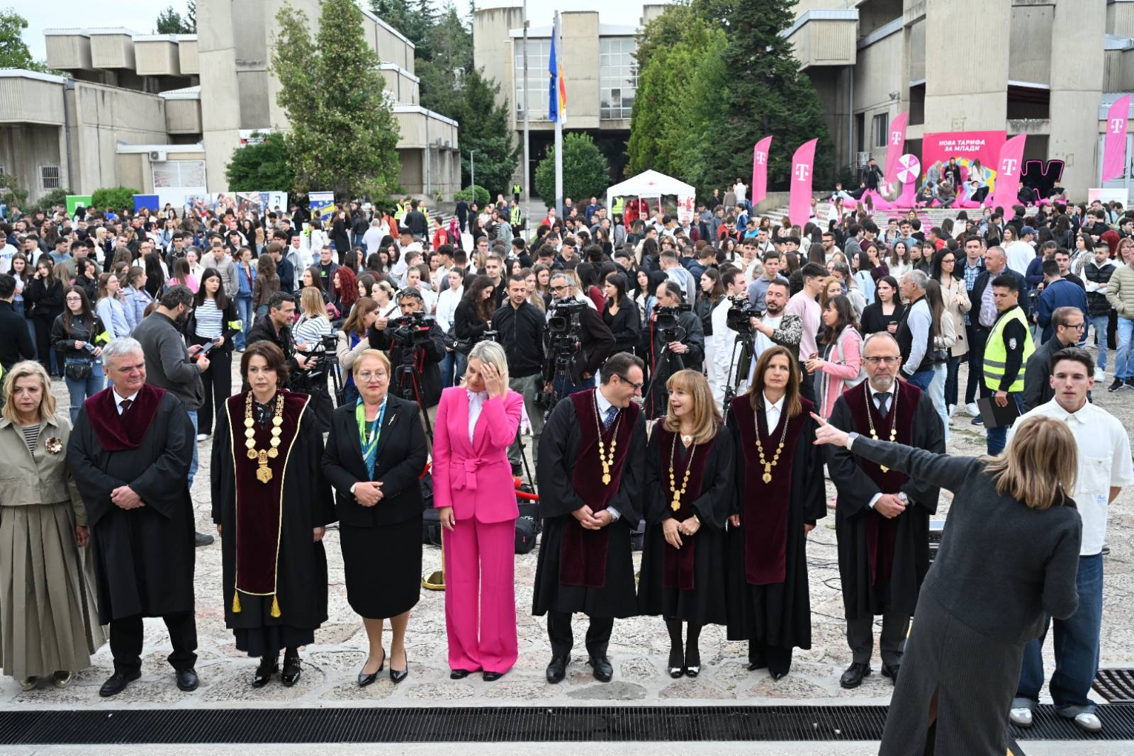 Универзитетот „Св. Кирил и Методиј“ денеска ги отвори вратите за нова генерација студенти, за сите вие кои верувате дека токму тука ќе добиете знаења, вештини и поддршка за да израснете во лидери кои ќе ја водат Македонија во 21 век. На вистинското место сте, во својата земја, на најстариот универзитет, каде професорите имаат одговори на сите ваши прашања и подготвени се вашиот ентузијазам да го насочат кон дисциплина и одговорност да изградите капацитети за живот во свет што брзо се менува, порача министерката за образование и наука Весна Јаневска на првиот академски час на Универзитетот „Св. Кирил и Методиј“ во Скопје.