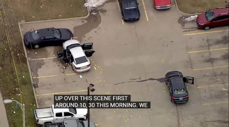 На местото на настанот, на паркингот на продавницата може да се забележат автомобили изрешетани со дупки од куршуми, јавува Мирор.