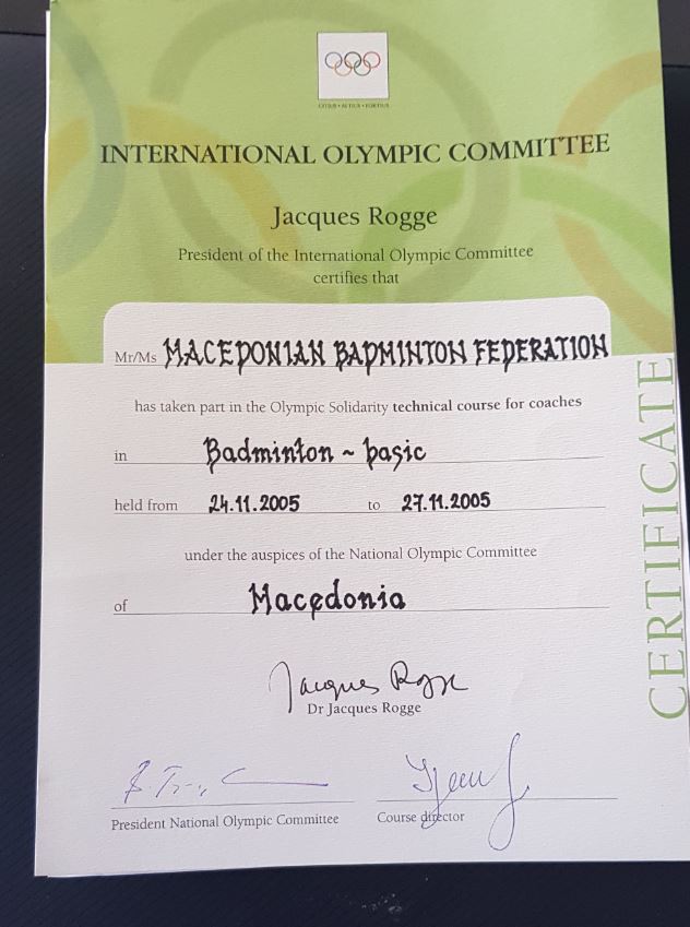 – Препорака до сите млади е да не го занемаруваат спортот, да го практикуваат во сите облици и форми, и како рекреативен, и како аматерски, и на крај како професионален. Што се однесува до бадминтонот, најтопло го препорачувам. Тоа е спорт за сите возрасти и полови, од 7 до 77 години. Напорен, но неодолив за оној кој еднаш ќе го проба. Безопасен, и што е многу важно за наши услови, многу евтин, спорт кој може секој да си го дозволи.