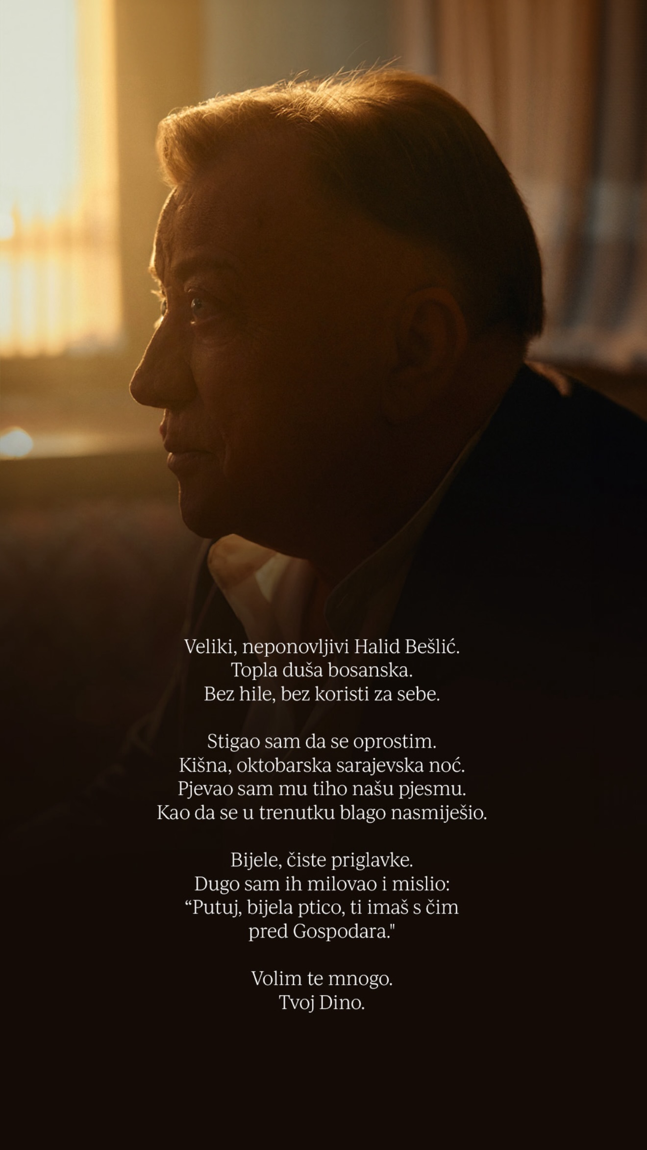 Од него се прости и неговиот долгогодишен пријател и колега Дино Мерлин, кој напиша дека се простил во дождлива, октомвриска сараевска ноќ, пејќи му тивко песна: „Како да се во миг благо насмевна. Патувај, бела птицо, ти имаш со што пред Господа“. Токму оваа пролет двајцата музичари објавија заедничка песна „Годино врела“, која се најде на последниот албум на Мерлин.