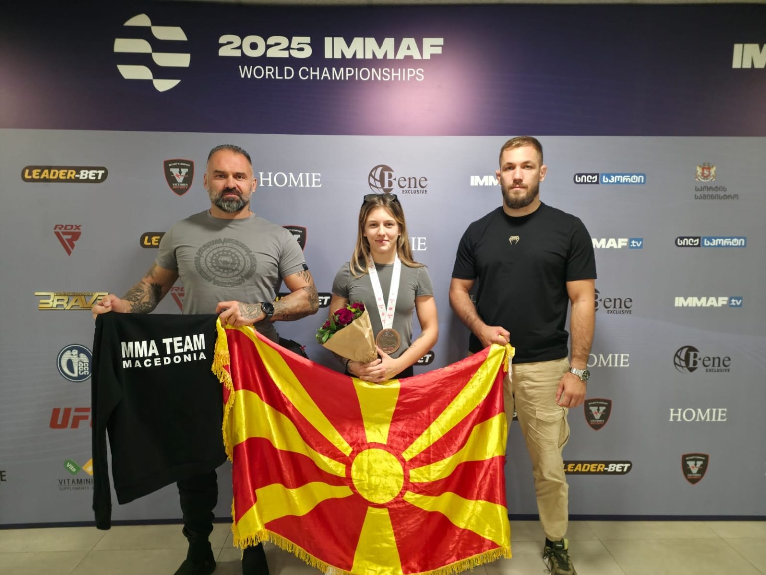Македонската ММА Федерација, како официјален член на Интернационалната ММА Федерација (IMMAF), е горда што нашата земја чекори рамо до рамо со балканските соседи на најголемата меѓународна ММА сцена. Ова е втора година по ред како Македонија е дел од најголемото ММА натпреварување под капата на IMMAF. Минатата година во Узбекистан, нашата претставничка Даниела Алексовска освои бронзен медал, а оваа година во Тбилиси, Грузија, таа повторно се закити со истиот. Во полуфиналната борба, Даниела беше поразена од Азербејџанката Нармин Алиева, која подоцна во Финалето ја декласираше противничката од Украина со доминантен настап, со што го освои златото и стана светска шампионка.