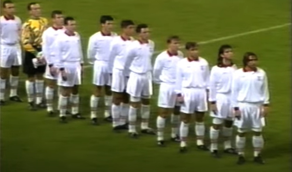 ВИДЕО | Македонските фудбалери им свртеа грб на судиите и ја пееја химната заедно со навивачите пред 31 година, во Брисел