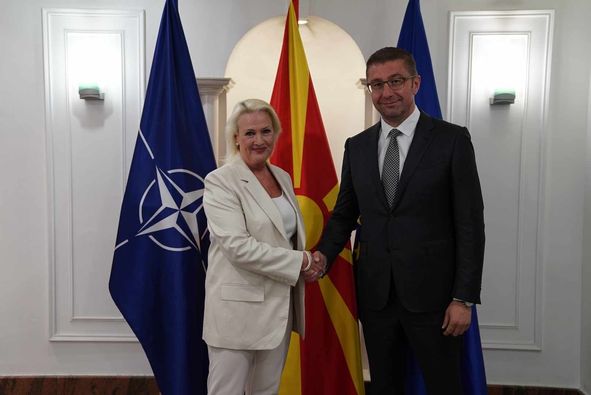Премиерот Христијан Мицкоски денеска оствари средба со Амбасадорката на САД, Ангела Агелер.