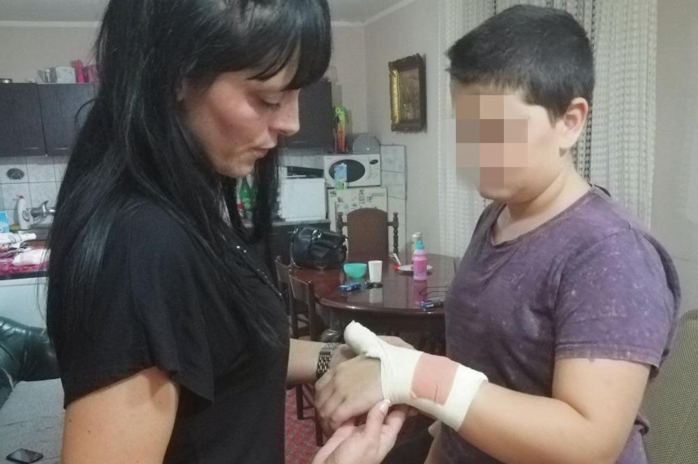 Неговата мајка Д.К. вели дека го нашла со раскрварено лице, изгребан и со видно отечена рака, а причина за тоа е како што вели дека нејзиниот син одбил да се тепа!