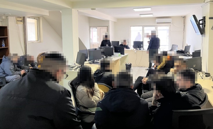 „При претресите во објектите се пронајдени и одземени 50 лаптоп компјутери, 351 мобилен телефонски апарат, 237 СИМ картички, 14 компјутери и 3 ДВР од надзорни камери. Исто така, во објектите беа затекнати 16 лица, од кои 11 турски државјани, за кои беше известен Секторот за странци, а три лица се приведени, со наредба од ОЈО Скопје и изведени пред јавен обвинител. По целосно расчистување и документирање на случајот ќе бидат поднесени соодветни кривични пријави“, се вели во соопштението.