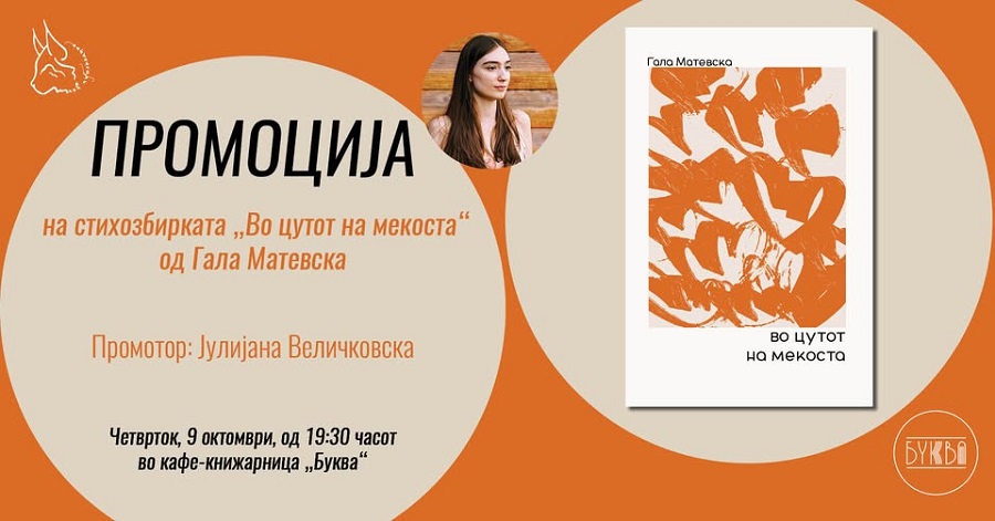 Промоцијата на стихозбирката „Во цутот на мекоста“ од Гала Матевска ќе се одржи во „Буква“