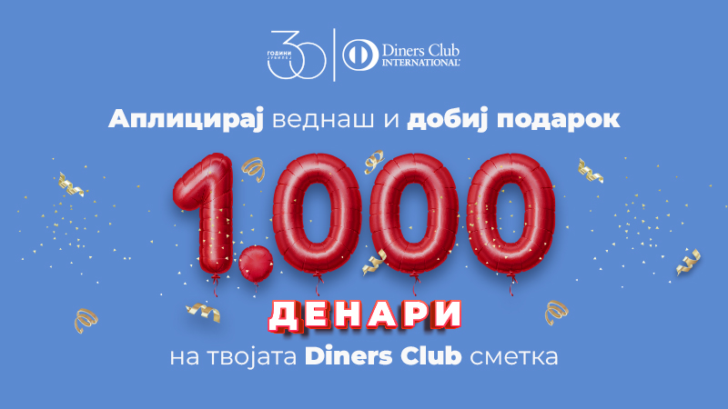 Сè уште не си член на Diners Club? Извади картичка веднаш и добиј подарок 1000 денари