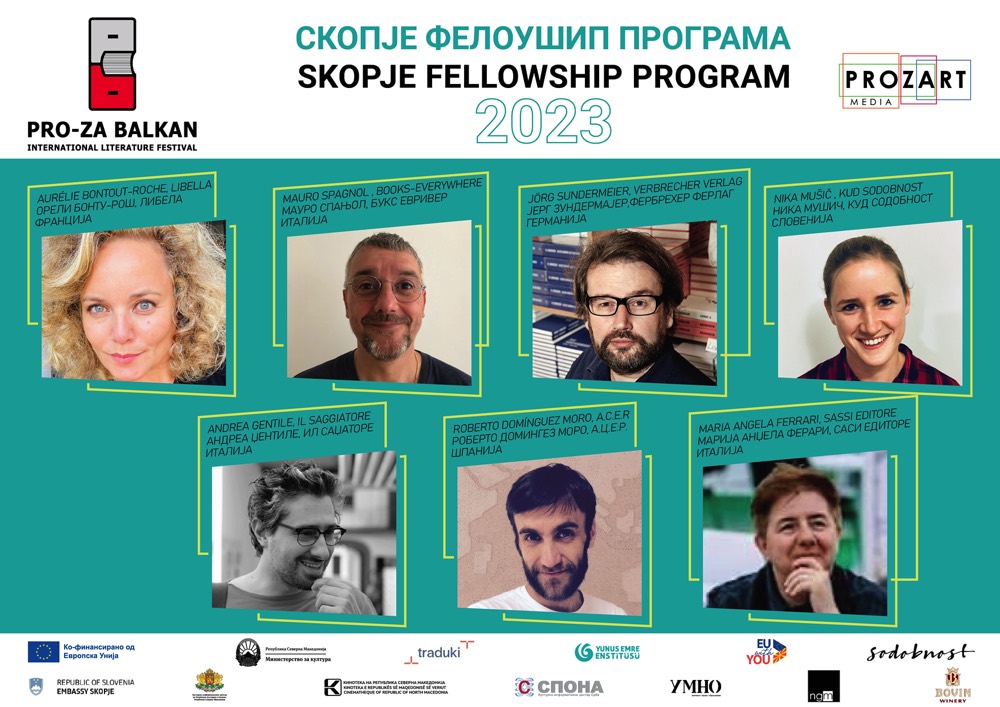 Aгент на А.Ц.Е.Р., најстарата книжевна агенција во Шпанија, и директорката за меѓународна продажба и извоз на италијанскиот гигант „Саси едиторе“, заедно со уште петмина издавачи од Европа, ќе бидат дел од програмата на јубилејното 10. издание на програмата „Скопје фелоушип“, на претстојниот Интернационален фестивал на литературата „Про-за Балкан“, што ќе се одржи од 17 до 20 септември во Скопје.