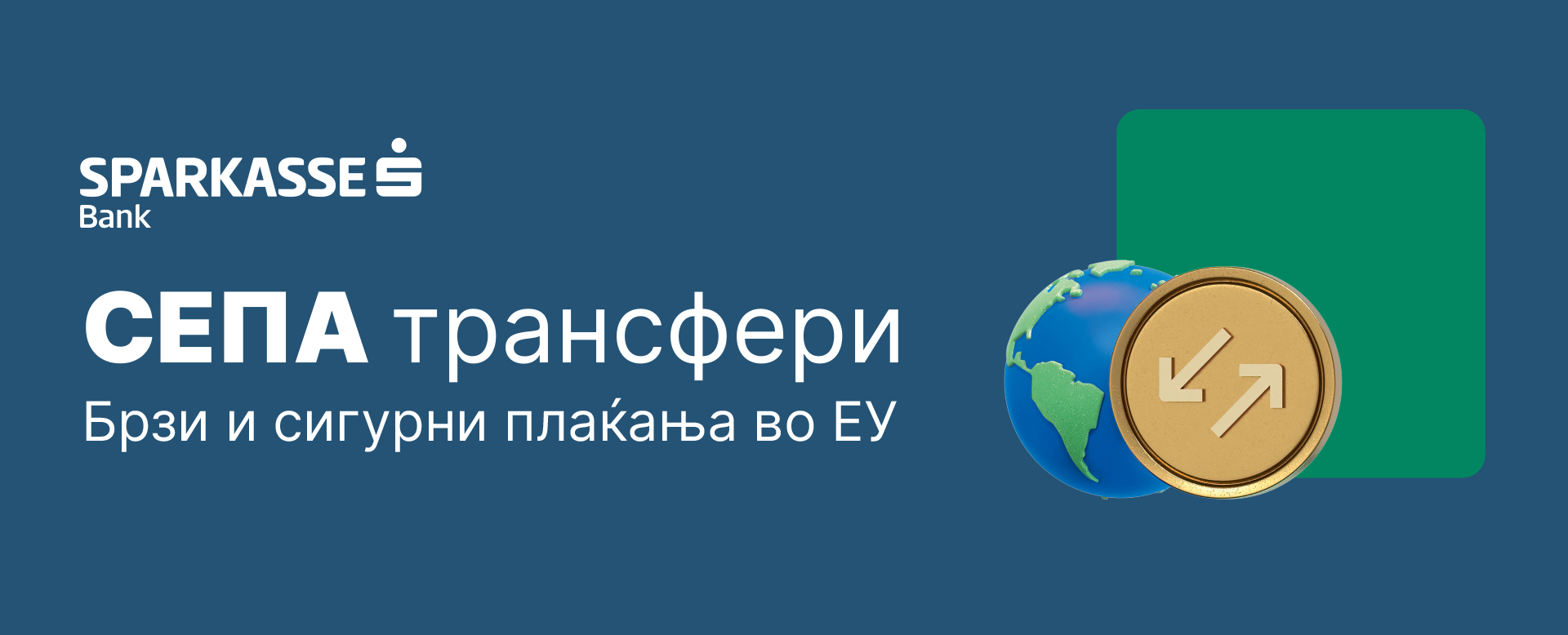 Од денеска, 6 октомври, Шпаркасе Банка АД Скопје започнува со извршување СЕПА-трансфери. Банката направи значаен исчекор кон современите европски платни системи, приклучувајќи се кон Единственото подрачје за плаќања во евра СЕПА (Single Euro Payments Area).