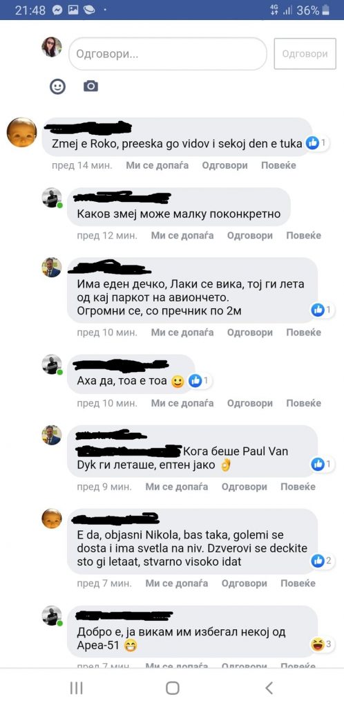 По социјалните мрежи граѓаните коментираа дека можеби се балони или дронови, а еден корисник на Фејсбук напиша дека се работи за змеј, што го лета дечко кој се вика Лаки кај паркот „Авионче“.