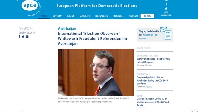 Од 2013 година наваму, Николоски е редовен набљудувач на изборите во државата управувана од диктаторот Илхам Алиев, кој ја има власта од 2003 година, откако на функцијата го наследи својот татко. Но, дали улогата на пратениците како Николовски е да ги легитимираат сите избори, вклучително и референдумот во Азербејџан од 2016 година, без да регистрираат дека во државата на Алијев не се почитуваат основните човекови права? Прашањето е легитимно ако се знае дека, покрај тврдењата на Кнаус, Европската платформа за демократски избори во октомври, 2016 година, годината кога се спровел референдумот, а Николовски го набљудувал, а потоа и го легитимирал, објавува текст во кој Александар Николоски е наречен потпретседател на ПССЕ и лидер на измамничката набљудувачка мисија на ПССЕ во Азербејџан. Насловот на текстот уште подиректно ја детектира таквата улога на Николоски, а гласи: Меѓународни „набљудувачи на изборите“ го обелуваат лажниот референдум во Азербејџан.