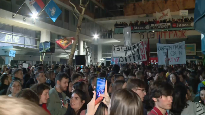 Српските студенти го блокираа влезот во РТС: Никој нема да влезе додека не се ослободи јавниот сервис
