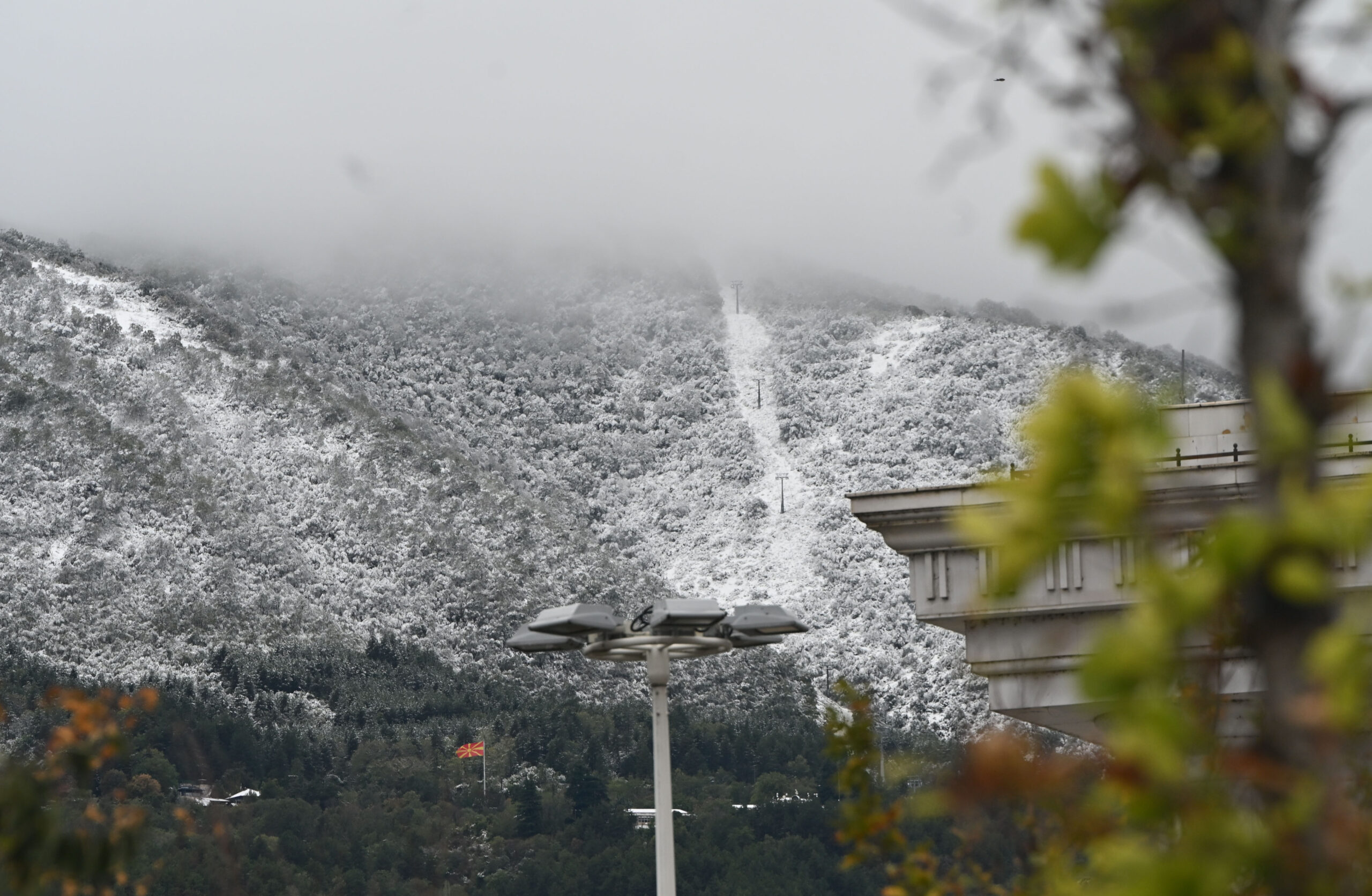 Снежна убавина утрово и на Водно. Првата снежна прекривка можеше да се види утрово од камерите на Водно поставени од Јавното сообраќајно претпријатие „Скопје“. Покрај снежната покривка, може да се види и магла.