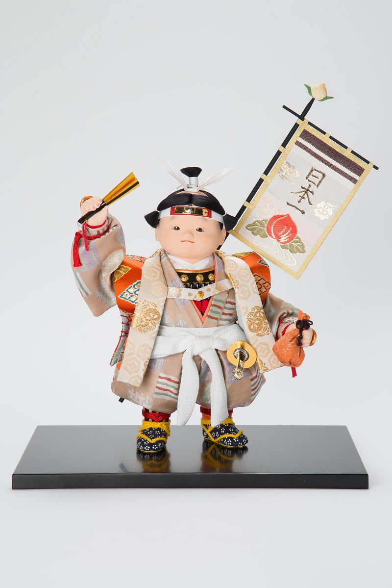 Момотаро е херој од јапонските народни приказни за кој се раскажува дека е роден од праска и кога пораснал отишол до островот на Огрите придружуван од куче, мајмун и фазан за да го врати богатството кое Огрите го украле. Во левата рака Момотаро држи колачиња „киби данго“ за кучето, мајмунот и фазанот, кои прифатиле да појдат со него. Дизајнер на куклата е Мацузаки Коико.