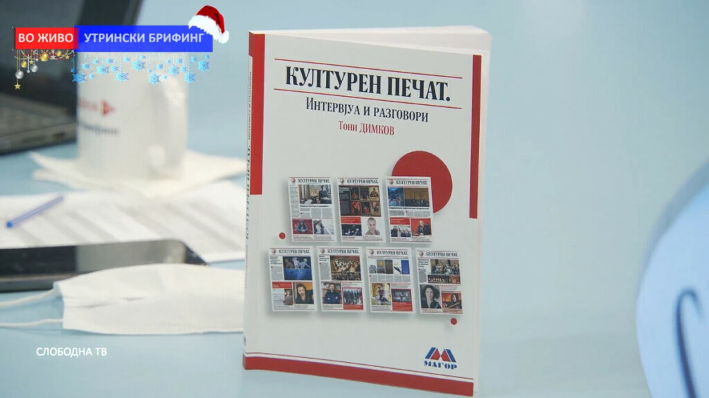 Книгата „Културен печат“, од додатокот за култура на весникот Слободен печат е пред 7-8 дена излезена од печат. Се обидовме да ги фатиме сите тие рокови што се околу последните денови во годината и нормално годината да биде заокружена и сите работи кои што се поврзани со оваа година да бидат завршени во рамките на оваа година, изјави во Утрински брифинг новинарот Тони Димков.