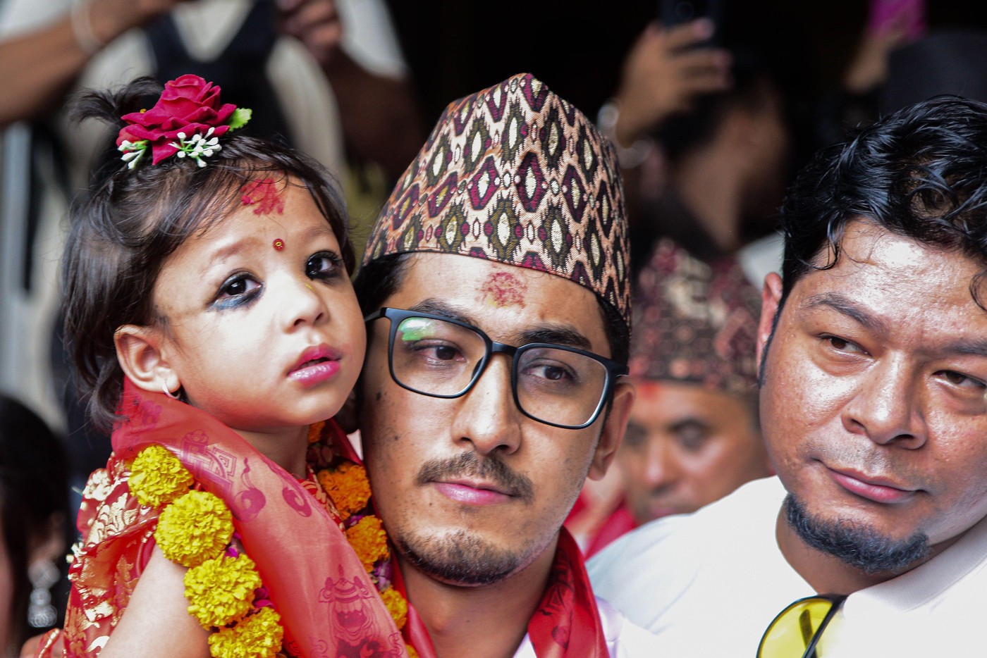 Семејството, пријателите и верниците ја придружуваа новата Кумари низ улиците на Катманду пред да влезат во храмот, кој ќе биде нејзин дом неколку години.
