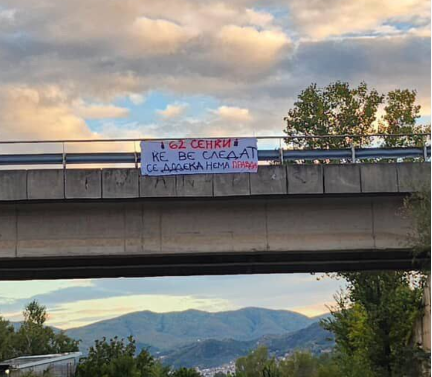 Премиерот Христијан Мицкоски и високи претставници на ВМРО-ДПМНЕ денеска беа во струмичкиот крај, а таму беа пречекани со натпис на кој стоеше пораката:„62 сенки ќе ве следат сè додека нема правда“, објави Инфомакс.