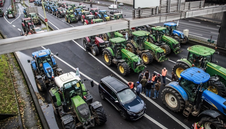 ВИДЕО | Француските земјоделци со трактори ги блокираа улиците на Париз
