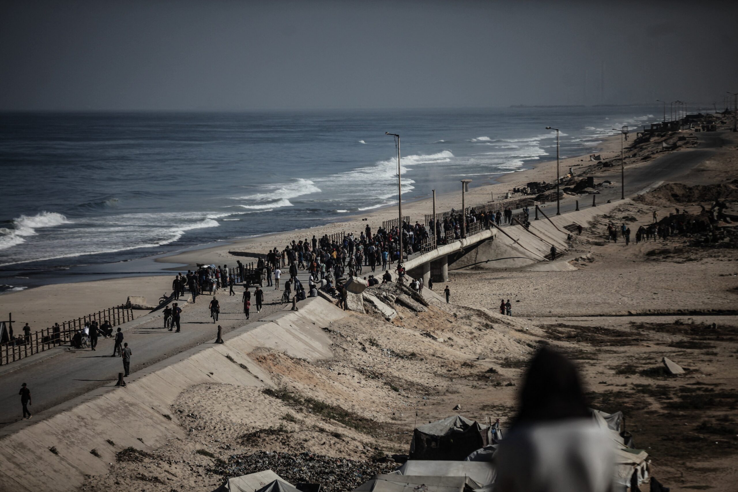 По оштетените тесни крајбрежни патишта, некои мавтаа со палестински знамиња и го направија знакот на победата, според Би-би-си.