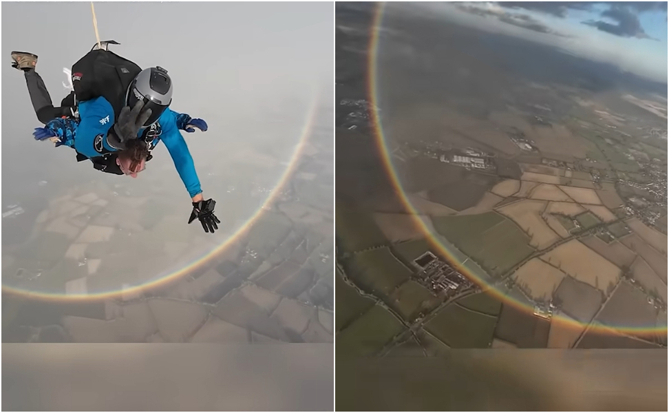 Токму ова го забележал падобранецот Пол Дјуи од Велика Британија додека паѓал на земја. Тој ја снимил сцената, а видеото брзо стана вирално на социјалните мрежи.