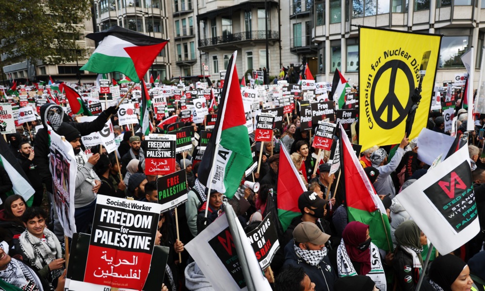 Илјадници луѓе кои вееја палестински знамиња и извикувајќи „Газа, Париз е со тебе“ се собраа денеска на првите пропалестински протести дозволени од полицијата во француската престолнина, откако Хамас го нападна Израел на 7 октомври.