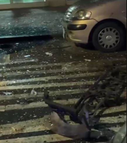 Скршени се стакла на улицата и на тротоарот, а оштетени се и паркирани автомобили. Полицијата им рекла на станарите да не ги напуштаат своите станови.