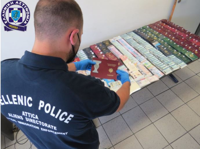 Од грчката полиција соопштија дека криминалната организација се товари за криумчарење мигранти и фалсификување патни исправи, уапсени се осум странски државјани – членови на организацијата, откриени 195 случаи на фалсификување на над 577 патни исправи и нелегално пренесување на најмалку 66 мигранти со стекнат нелегален профит од над 550.000 евра.