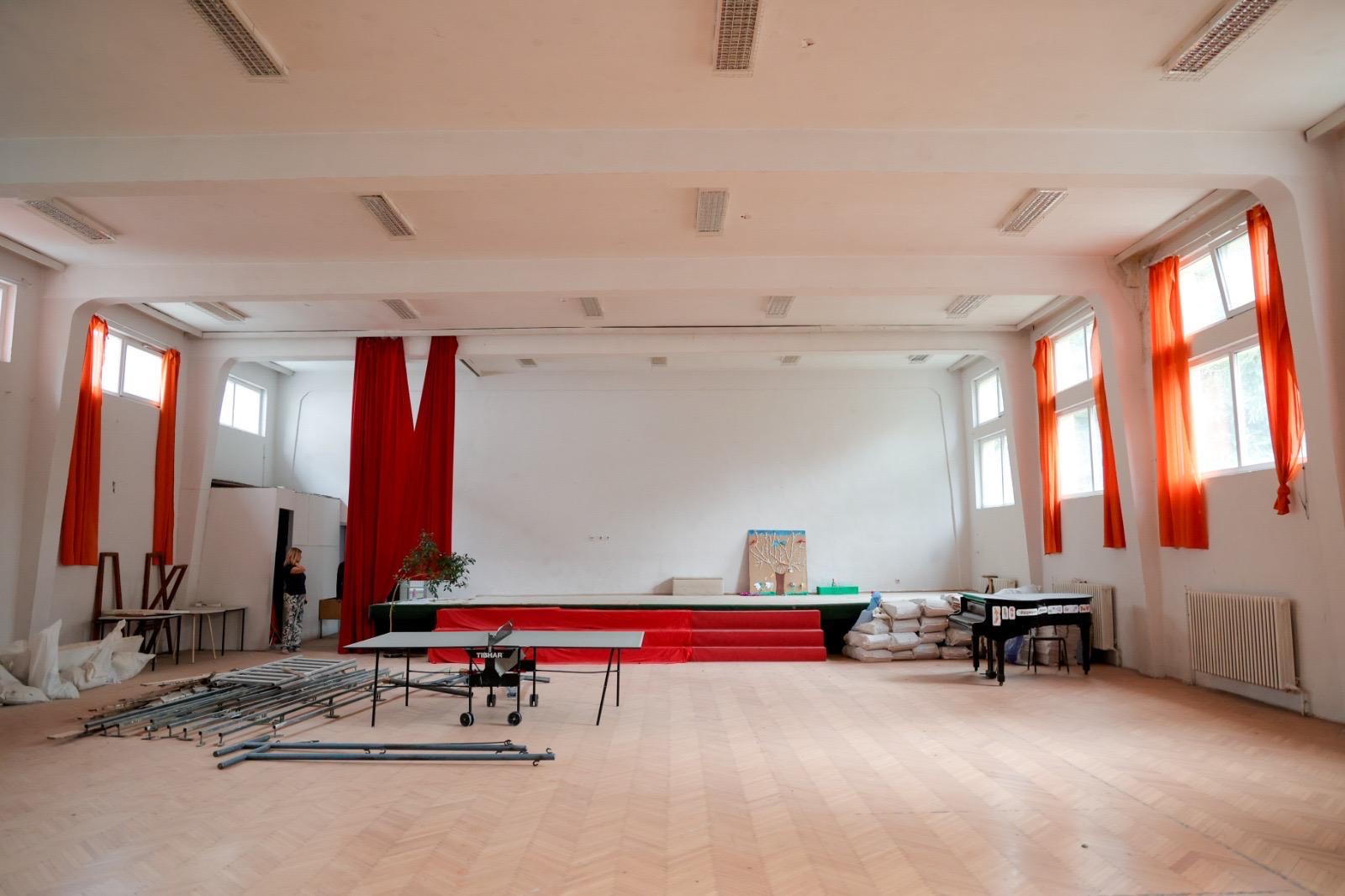Реконструкцијата на свечената сала, предвидува целосно нова бина и нови скалила, а постоечкиот паркет се струга и лакира. Во тек се молерисувањето на ѕидовите, замената на плафонските светла со штедливи, оспособувањето на прозорците за отворање и отстранување на старата остава со непотребен материјал. Паралелно, се работи и на меѓупросторот, каде се заменува оштетениот под и се изведуваат молерисувачки зафати.